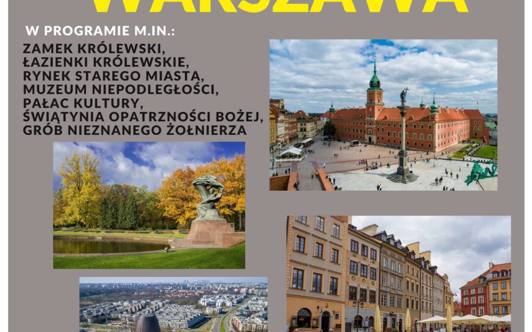 Koło Gospodyń Wiejskich Wielopole i Stowarzyszenie Rozwoju Sołectwa Wielopole dla mieszkańców gminy Chełmiec organizują 3-dniową wycieczkę do Warszawy (w terminie 4-6 sierpnia 2023).